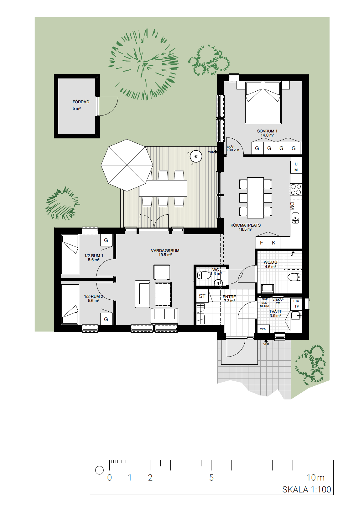 • Öppen planlösning med kök i anslutning till vardagsrum